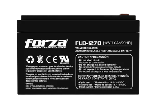 La FORZA FUB-1270 Batería Sellada 12V / 7AMP es la solución ideal para garantizar un suministro confiable y continuo de energía en una amplia variedad de aplicaciones. Diseñada con tecnología de plomo-ácido sellada (VRLA), esta batería combina durabilidad y eficiencia en un formato compacto y sin mantenimiento. Perfecta para sistemas de respaldo UPS, dispositivos médicos, sistemas de alarmas, iluminación de emergencia y equipos de telecomunicaciones, la FUB-1270 ofrece un rendimiento superior con alta capacidad de carga y una excelente vida útil.