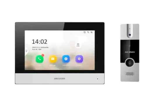 El Video Portero Hikvision DS-KIS302-P redefine la seguridad y la conveniencia en la entrada de su hogar o negocio. Este innovador kit híbrido ofrece una solución integral que combina la comodidad de la pantalla táctil en la unidad interior con la versatilidad de la aplicación móvil Hik-Connect.