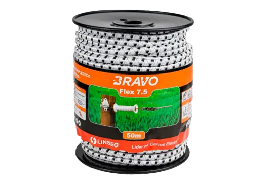 El Cordón Electroplástico Elástico Bravo Flex 7.5 de LINSEG es la solución perfecta para quienes buscan una opción confiable y duradera para la electrificación de cercos ganaderos. Este cordón destaca por su innovador diseño y materiales de alta calidad que garantizan un rendimiento superior en cualquier condición climática.